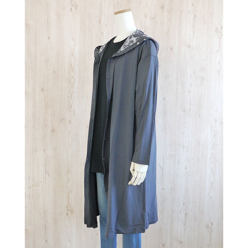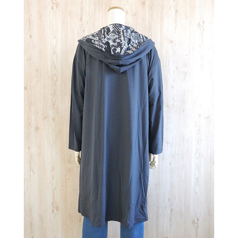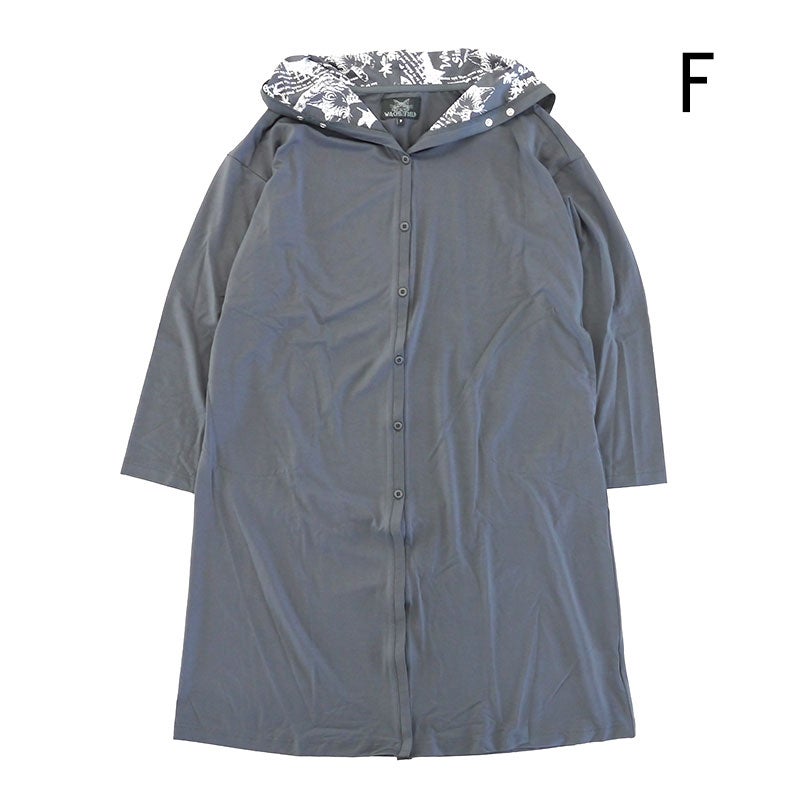 膝まで覆う安心感のある丈で、日常の紫外線対策に活躍する一枚。さっと羽織れるデザインながら、しっかりと日除け効果を発揮します。フード内側の柄がさりげなく覗く、遊び心のあるデザインに仕上げました。フロントはすっきりとしたシンプルな印象で、どんな装いにもなじみやすく、両サイドには実用的なポケット付き。暑い季節でも快適に着用できる大人のためのカーディガンです。