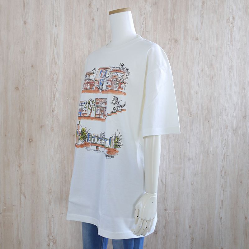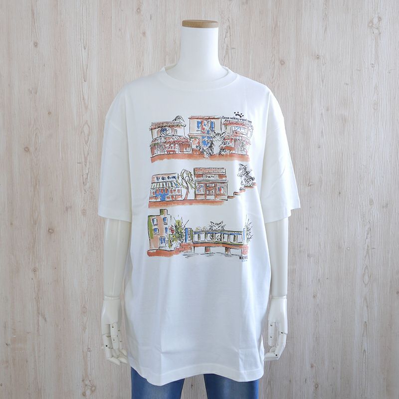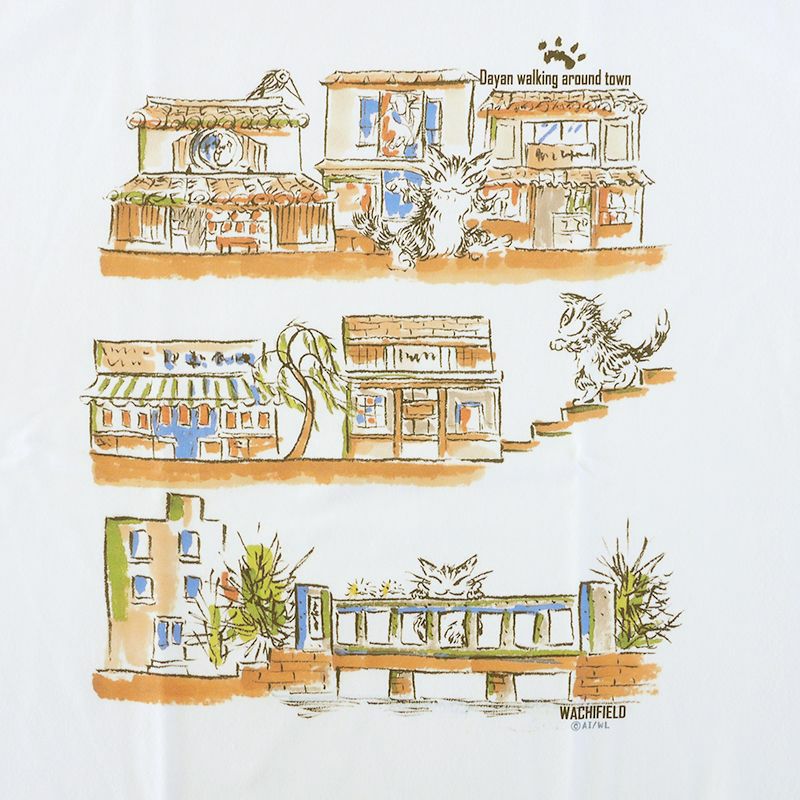スケッチタッチのカジュアルな絵柄。ダヤンがのんびり街をお散歩しているプリントです。定番型Tシャツ。フリーサイズで大きめなのでインナーに長袖等合わせて重ね着もおすすめです。色はVW(バニラホワイト)。