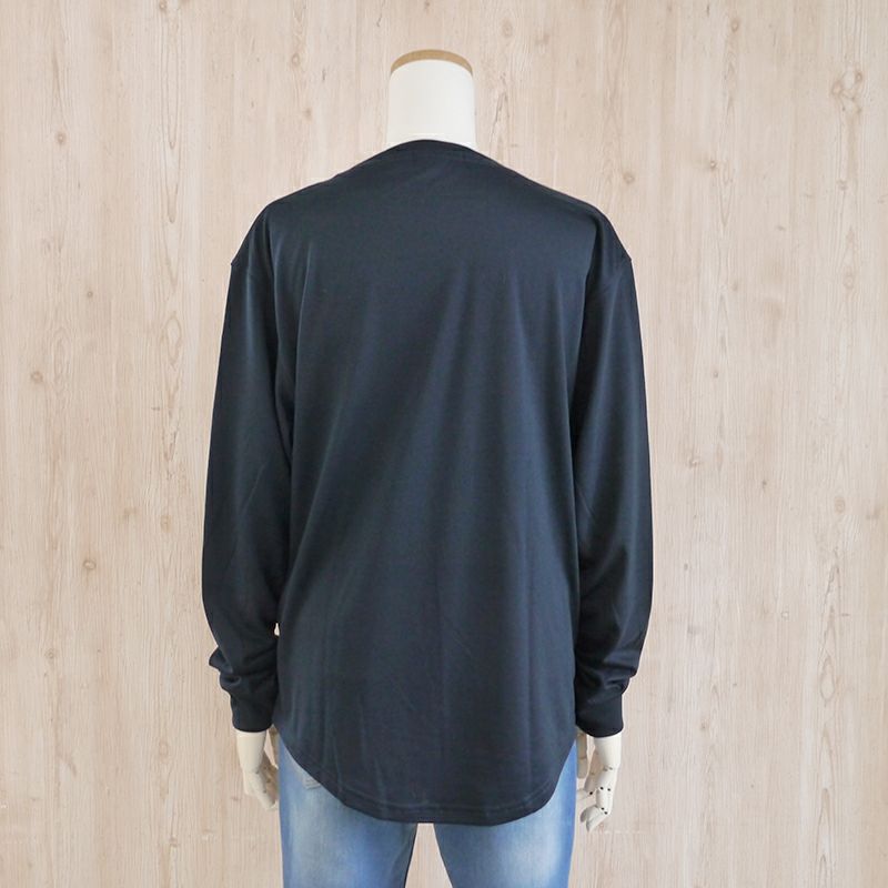 前後差のあるラウンドテール(裾が丸くなってる)は、前だけをタックインするスタイルにも絶妙にマッチ。ドライ素材でありながらコットンのようなやわらかな風合いが魅力。吸水性が高いのでスポーツシーンにはもちろん、家事や日常にもおすすめです。