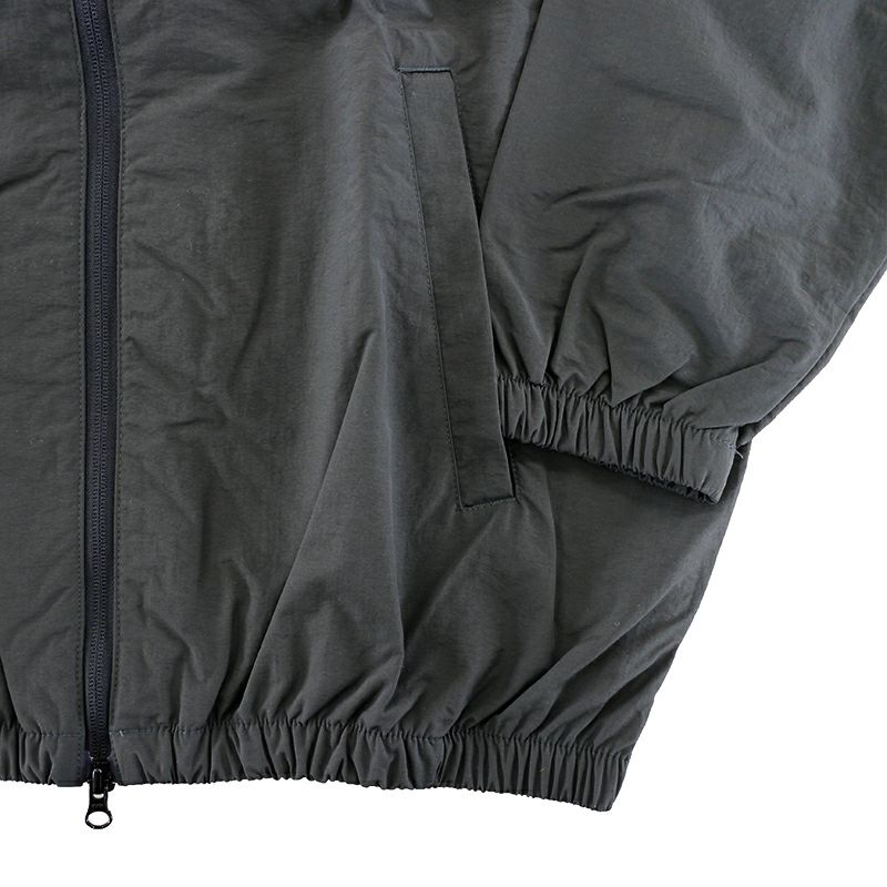 タフなナイロンをコットンの様に織り込んだしわ加工の柔らかな生地感。ゆったりとしたサイジング、高すぎないスタンドネックでスポーツはもちろん、街着にもなる爽快なジャケットです。ルーズフィットNパンツ(別売)とのセットUPもおススメです。