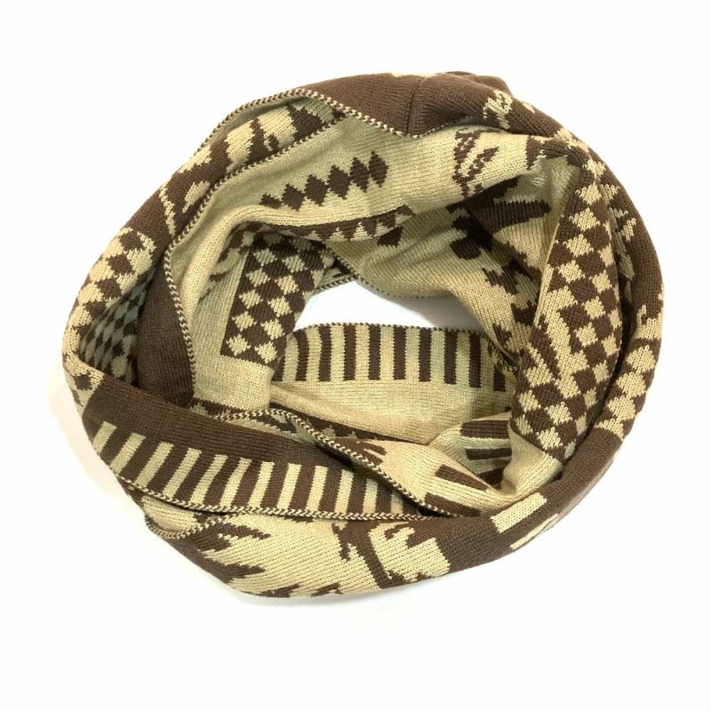 輪っか状になっていて、結んだり留めたりする必要のないスヌード。小ぶりなので首回りももたつかず、小さくたためるので持ち運びにもかさばりません。