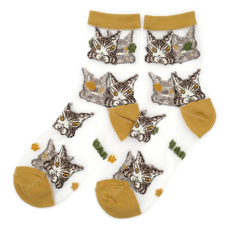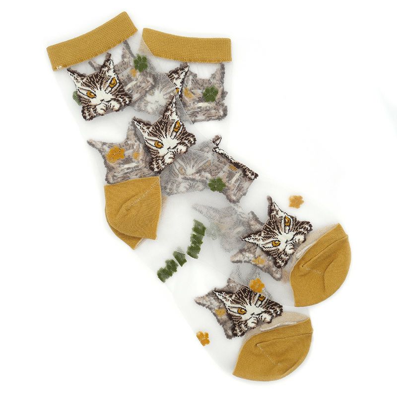 透け感のあるデザインが涼し気な印象のクルー丈ソックスです。カラータイツと組み合わせれば通年着用できます。