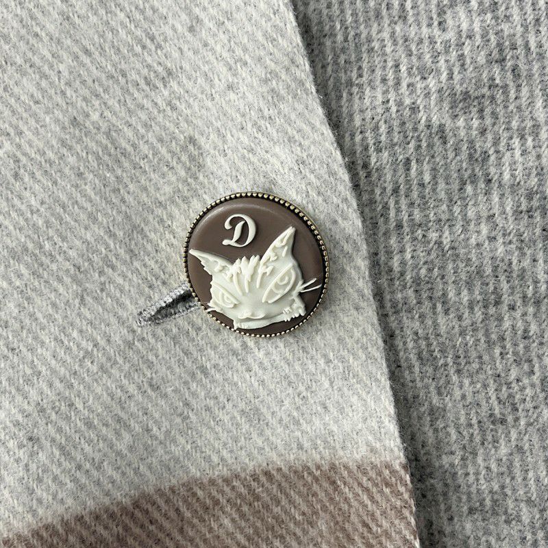 美しい浮き彫りのカメオ風ボタンがアクセントになったストールです。首にぐるりと巻くマフラーのような使い方から、ボタンを留めてポンチョ風に羽織る使い方まで、コーディネートのアレンジを楽しめます。