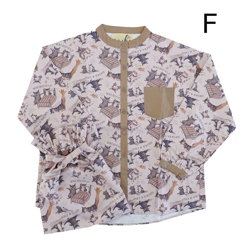 総柄ブラウス+巾着付 F D&C 茶