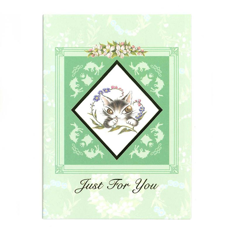 金箔押しの窓から中の絵が見える仕掛けのメッセージカードです。カードを収められる封筒付き。
