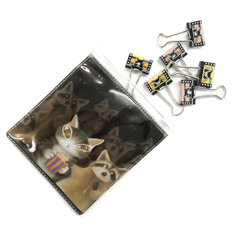 ジップ付きケースとダブルクリップのセットです。ケースにもクリップにもダヤンの柄が入っています。資料などをまとめるのはもちろん、袋菓子などの口を留める用途にも。