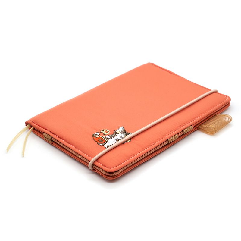 薄手のスケジュールやおくすり手帳に。ワンポイント刺繍で持ちやすい落ち着いたデザインです。カードポケット・ペンホルダー付きだから必要なものを最小限にまとめておけます。