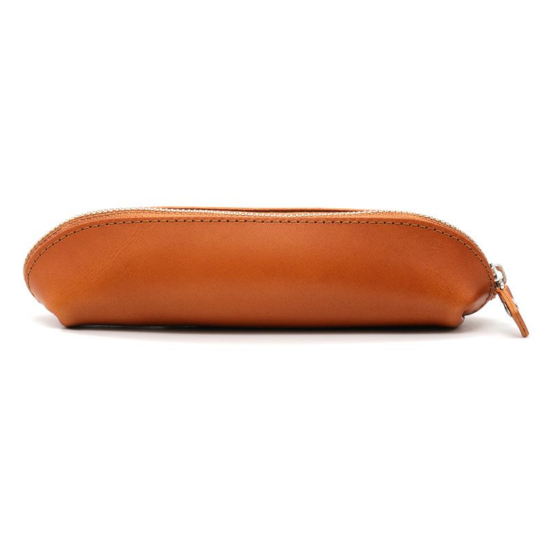 小さすぎず大きすぎずちょうどいいサイズの革製ペンケースです。ペンの太さにもよりますが、8本くらい入る容量です。開けた状態で自立してくれるので出し入れが楽ちんです。