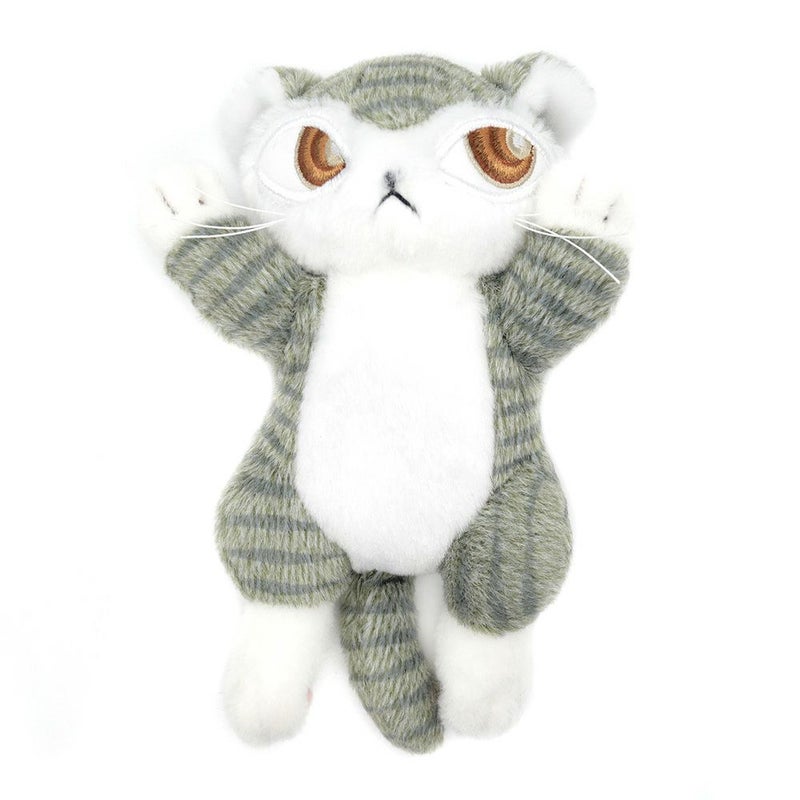 クタッと寝そべる姿になごむ、手のひらサイズのぬいぐるみ。正面からは両手をめいっぱい上げたポーズでちょっぴりおもしろおかしくキュートです。おなかとしっぽに入ったペレットのさわり心地が絶妙でクセになりそう。連れていきやすいサイズ感なので、ぜひ一緒にお出かけしてくださいね。