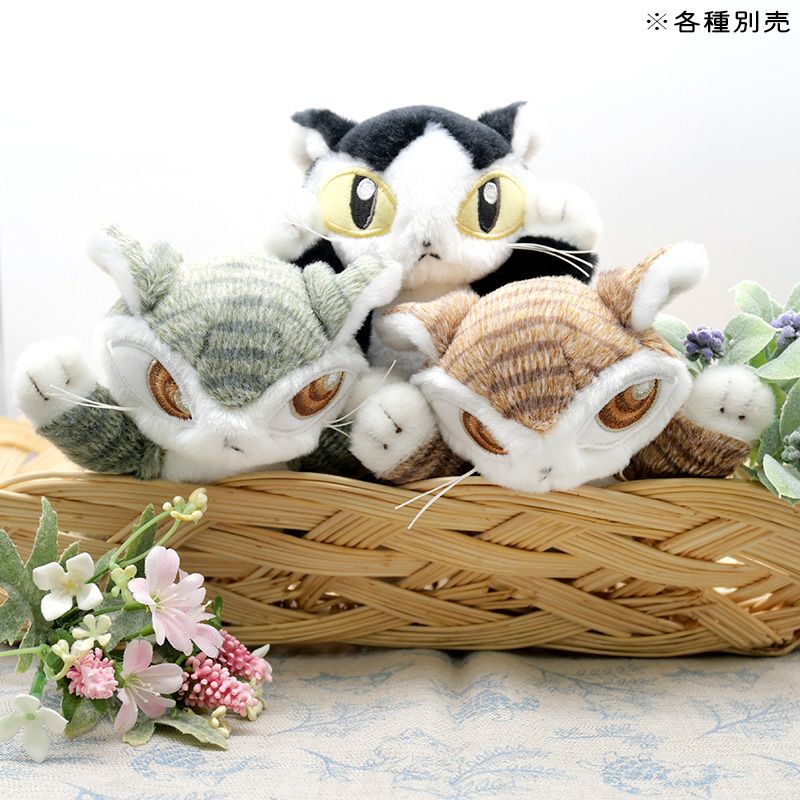 クタッと寝そべる姿になごむ、手のひらサイズのぬいぐるみ。正面からは両手をめいっぱい上げたポーズでちょっぴりおもしろおかしくキュートです。おなかとしっぽに入ったペレットのさわり心地が絶妙でクセになりそう。連れていきやすいサイズ感なので、ぜひ一緒にお出かけしてくださいね。
