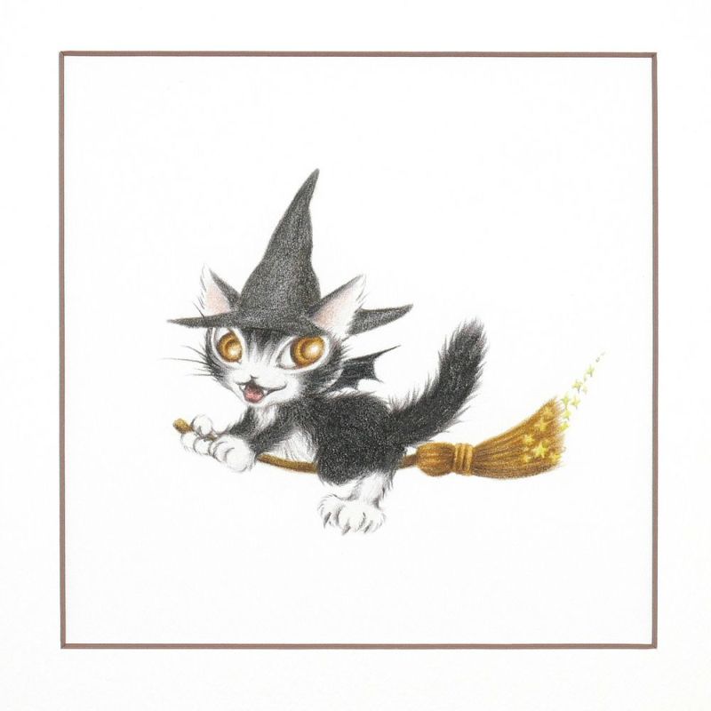 いたずらな悪魔のコンパクトな版画です。現物には、版画紙の余白に作家池田あきこの直筆サインとエディションナンバーが入ります。