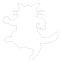 ダヤンの影。毎年一度、9月の満月の夜に開かれる影たちのお祭り「チビクロパーティ」では、実体のダヤンから離れおおはしゃぎ!ダヤンと同じく、気まぐれで冒険家。好奇心旺盛な性格です。